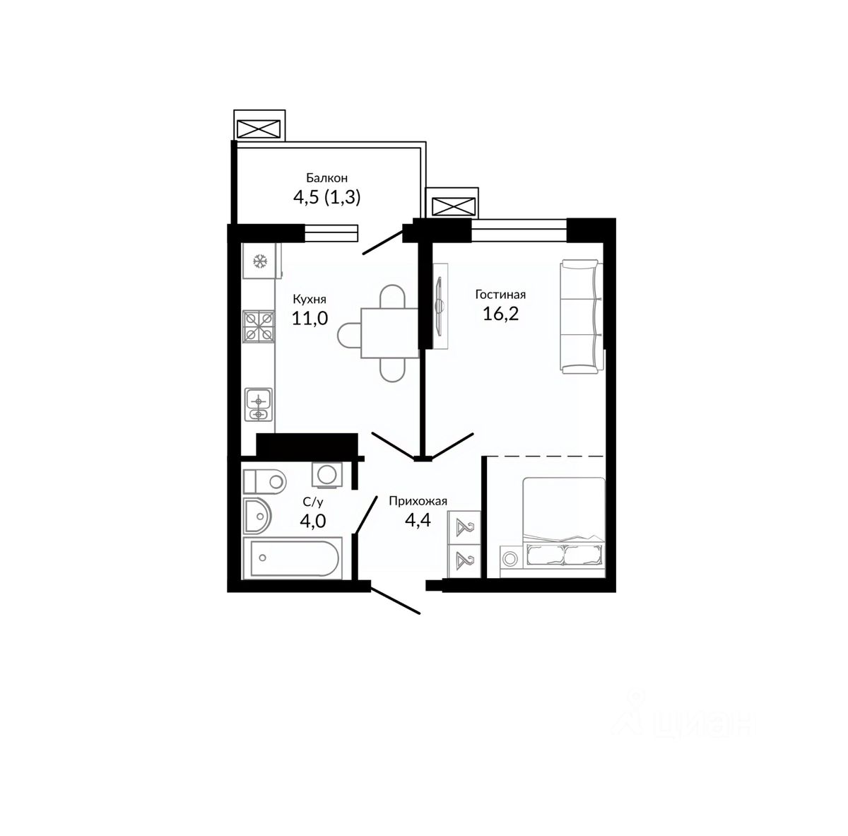 Общая площадь38,8 м2