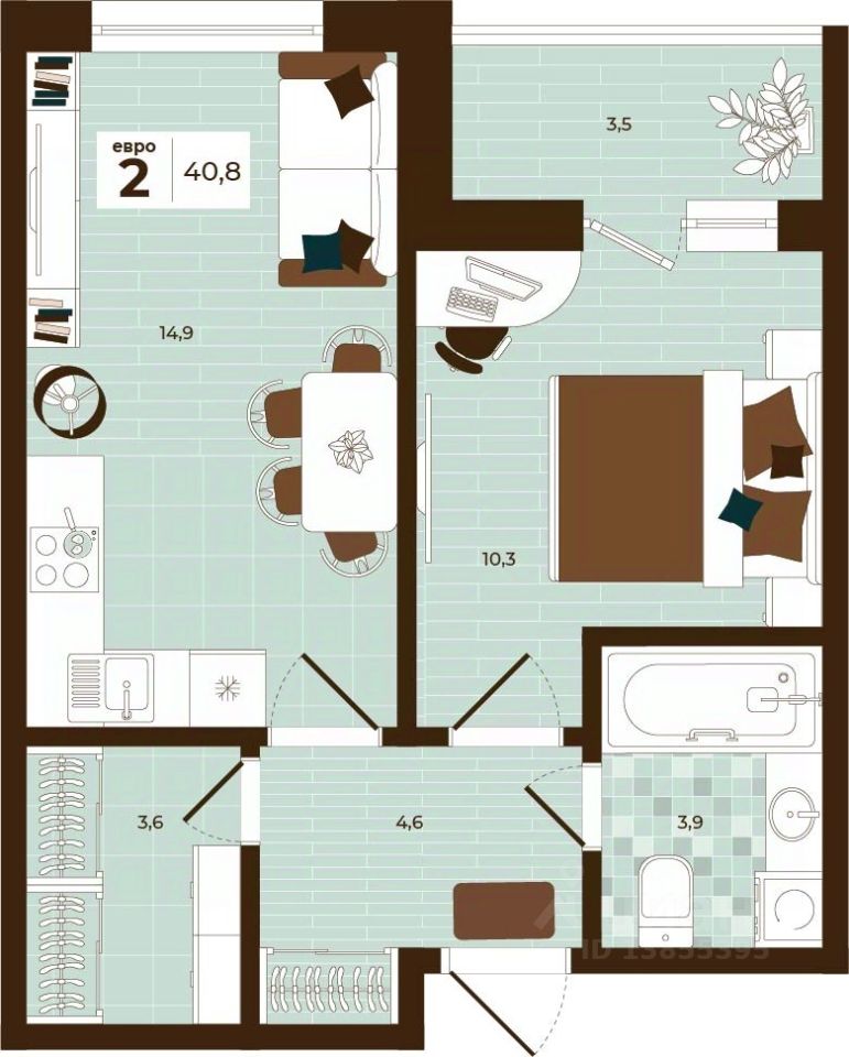 Продаётся 2-комнатная квартира в строящемся доме (Дом 28), срок сдачи: I-кв. 2027, общей площадью 40.8 кв.м., на 10 этаже. Расположение, транспортная доступность Новый жилой комплекс ''Юго-Восточный'' строится в Туле, в 3,5 км от центра города. Благодаря удачным транспортным развязкам, автолюбители смогут доехать до центральных кварталов примерно за 5 10 минут, составив наиболее быстрый и удобный маршрут с учетом загруженности дорог. Проблем с мобильностью не возникнет и у пассажиров общественного транспорта. Рядом с домом расположены остановки автобусов и маршрутных такси, которые быстро довезут до любого района города. Так, чтобы добраться до центра, следует дойти пешком до остановки ''Медтехника'', где останавливается маршрутное такси, доезжающее до центральных кварталов всего за 7 8 минут. Инфраструктура Район, где возводится новый жилой комплекс, активно застраивается, и сеть инфраструктуры сов временем будет расширяться. Но и сейчас все, что нужно для комфортной жизни в городе, находится недалеко от жилого комплекса. В шаговой доступности расположены продуктовые магазины: ''Виктория'', ''Овощи-фрукты'', Магазин рыбы и мяса птицы, магазин мяса и колбас ''У Максима'', супермаркеты ''Дикси'', ''Пятерочка'', ''SPAR''. Неподалеку находится гипермаркет ''Линия'', крупный торговый центр, в котором расположены отделения банков, гипермаркет ''Глобус'', салон оптики, мебельный магазин ''Столплит'', зоомагазин ''Четыре лапы'' и пр. В соседнем здании находится строительный гипермаркет ''Леруа Мерлен'', за ним крупный магазин товаров для спорта, туризма и активного отдыха ''Декатлон''.Недалеко от жилого комплекса открыты кафе и рестораны: кофейня ''Bonape'', пиццерия ''Культура'', кафе ''Вкуснов'', кафе быстрого обслуживания ''Rapido'', ресторан ''У фонтана'' и пр.В районе есть аптеки, поликлиники, диагностические центры. В шаговой доступности от жилого комплекса расположено несколько детских садиков, в том числе, садик комбинированного вида ''Алые паруса''. Есть дошкольные отделения, входящие в состав образовательных центров, Центры развития ребенка. Поблизости расположены средние школы, в том числе, школа для детей с ОВЗ. Рядом с жилым комплексом находится Тульская Духовная Семинария и Суворовское училище. Надежность застройщик: достраивает объект ООО Ин-Групп.АрхитектураЖилой комплекс будет представлен 19 монолитно-кирпичными корпусами переменной этажности, выполненными в едином архитектурном стиле. При строительстве ЖК ''Юго-Восточный'' применяются современные материалы высокого качества, которые обеспечивают надежность домов и комфортный микроклимат в помещениях. Каждая секция оснащается современными лифтами. Помещения общего пользования отделываются экологичными материалами. Квартиры предлагаются однокомнатные (от 43,9 кв. м), двухкомнатные (от 45,8 кв. м), трехкомнатные (от 60,4 кв. м) и четырехкомнатные (от 87,2 кв. м), а также уютные студии (от 28,9 кв. м).На внутренней территории проводится комплексное благоустройство: озеленение, организация игровых площадок, мест для отдыха и зан