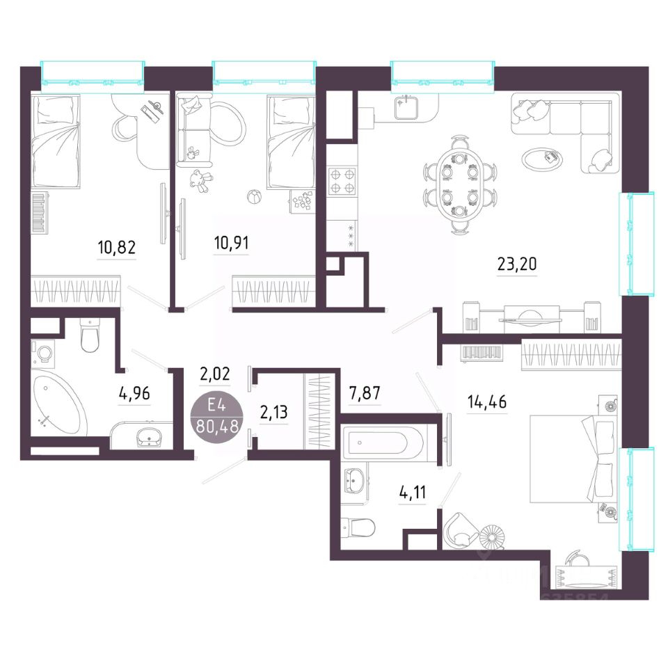 Общая площадь80,48 м2