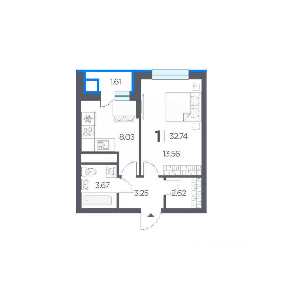 Общая площадь32,74 м2