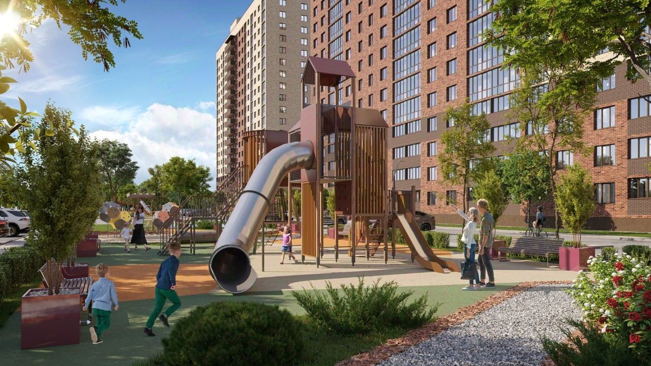Ключевые преимущества: • Отличная локация: рядом г-т ''Глобус'', вся инфраструктура под рукой. • Всё для жизни на территории: свой детский сад и школа во дворе. • Просторные умные дворы без машин, с современными детскими площадками. • Комфорт в деталях: панорамные окна, индивидуальное отопление, стильные холлы и безбарьерная среда.