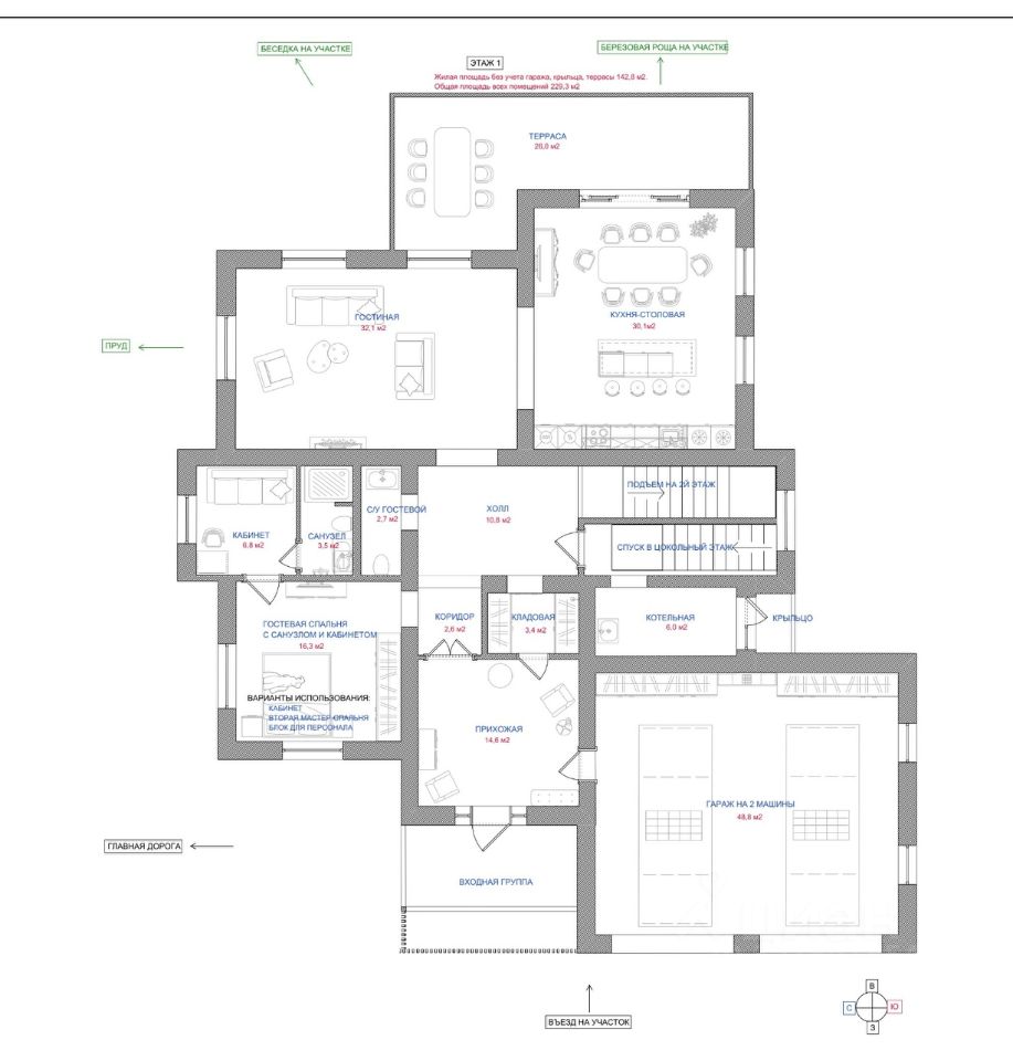 Возможность обустроить цокольный этаж как отдельную квартиру, что позволяет сэкономить на строительстве дома для персонала.