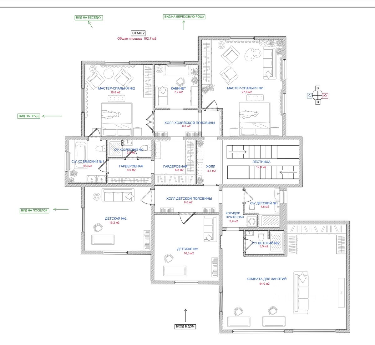 Светлые и просторные комнаты, монолитная лестница, окно в ванной мастер-спальни, много мест хранения.
