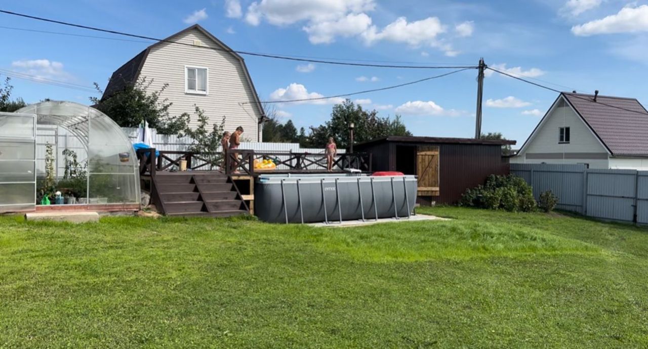 Участок ровный, ухоженный посажен газон, обустроены высокие грядки и небольшая теплица