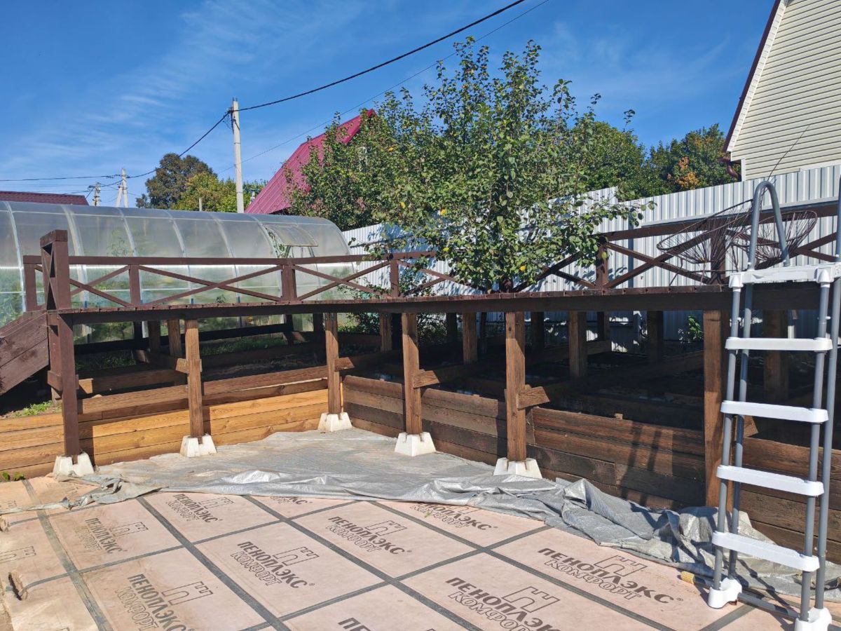 зона отдыха для установки бассейна, система дровяного подогрева воды в бассейне