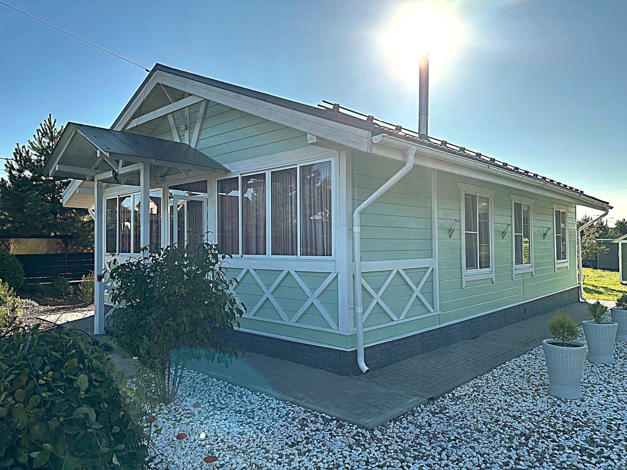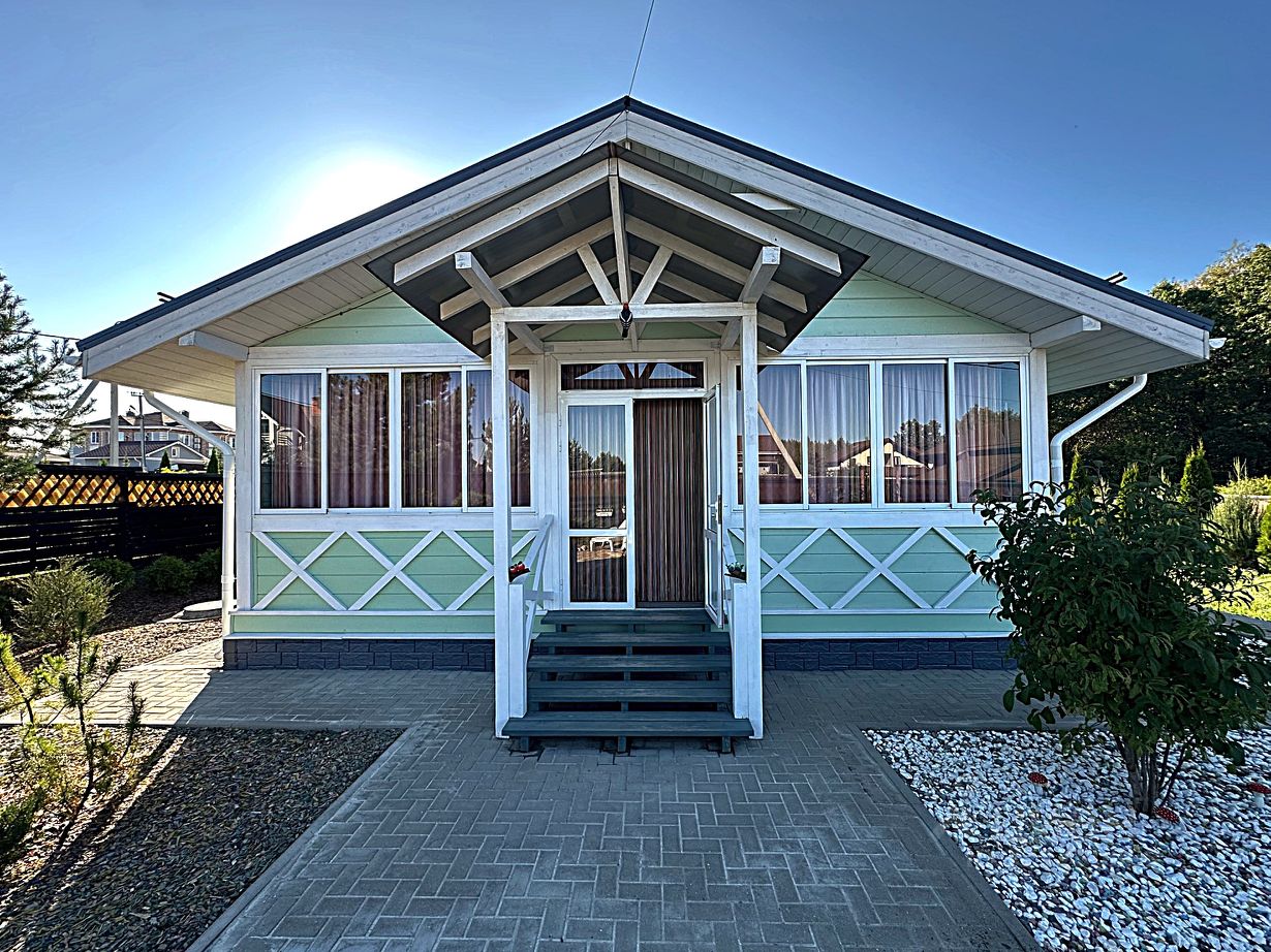 Уютный одноэтажный дом в дачном клубе с курортной инфраструктурой: зарыбленные озёра, оборудованные пляжи, пешеходные дорожки по всей территории, СПА-центр, фитнес, бассейна, магазины, ресторан, аптека, охрана по всему периметру. Если вы уже знакомы с нашим посёлком, то тогда прекрасно понимаете всю его прекрасную исключительность, если же не знакомы, то с радостью приглашаем вас для знакомства с его достопримечательностями. Дом расположен в посёлке ''Капитанский мыс'', т.е. на максимальном отдалении от шоссе, а потому и шум этого шоссе здесь практически не слышен, но слышны лесные птички и прочие умиротворяющие звуки природы. Дом оборудован всей необходимой для комфортного проживания техникой и мебелью, которые останутся новым хозяевам. Приезжайте!