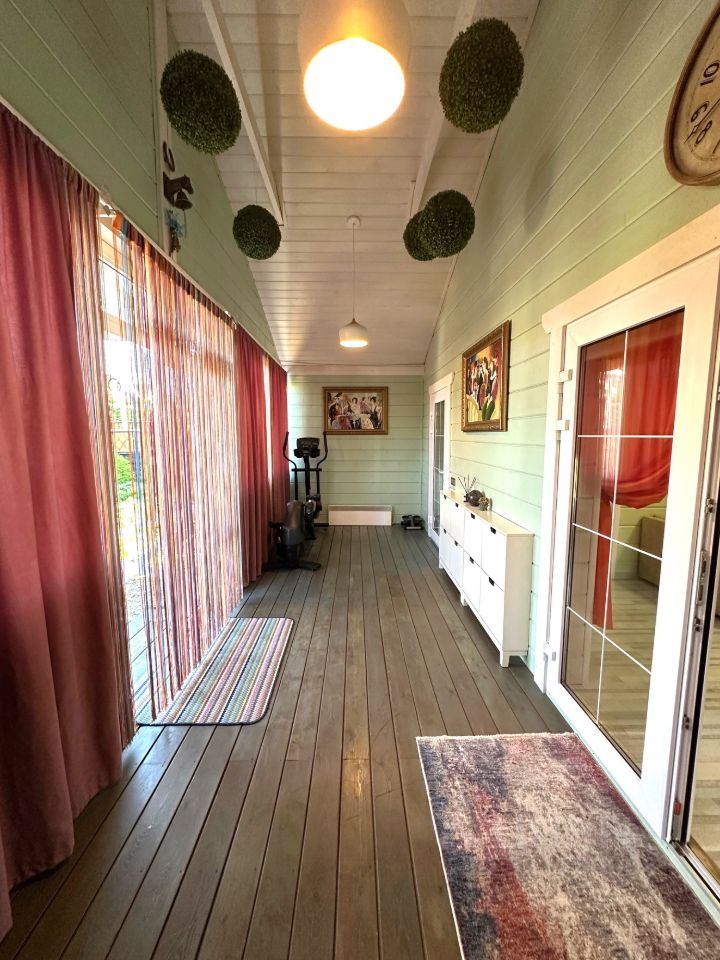 Уютный одноэтажный дом в дачном клубе с курортной инфраструктурой: зарыбленные озёра, оборудованные пляжи, пешеходные дорожки по всей территории, СПА-центр, фитнес, бассейна, магазины, ресторан, аптека, охрана по всему периметру. Если вы уже знакомы с нашим посёлком, то тогда прекрасно понимаете всю его прекрасную исключительность, если же не знакомы, то с радостью приглашаем вас для знакомства с его достопримечательностями. Дом расположен в посёлке ''Капитанский мыс'', т.е. на максимальном отдалении от шоссе, а потому и шум этого шоссе здесь практически не слышен, но слышны лесные птички и прочие умиротворяющие звуки природы. Дом оборудован всей необходимой для комфортного проживания техникой и мебелью, которые останутся новым хозяевам. Приезжайте! С удовольствием покажем Вам дом, ответим на все вопросы и покажем все достопримечательности посёлка.