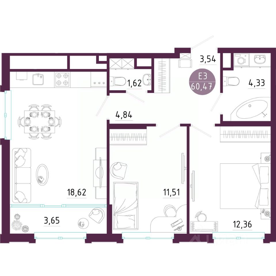 Общая площадь60,47 м2