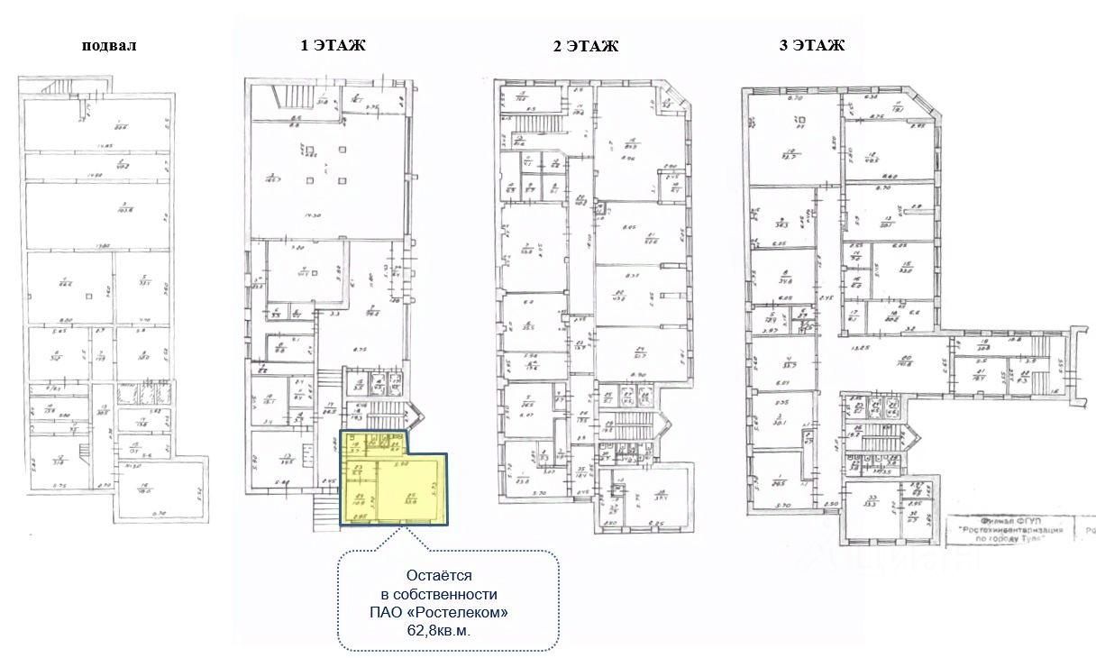 Подвал 567,8 кв.м., кадастровый номер 71:30:050202:1493 1 этаж 330,2 кв.м., кадастровый номер 71:30:050202:2023 2 этаж 33,3 кв.м., кадастровый номер 71:30:050202:1491 3 этаж 749,7 кв.м., кадастровый номер 71:30:050202:1499 4 этаж 754,7 кв.м., кадастровый номер 71:30:050202:1497 5 этаж 508,9 кв.м., кадастровый номер 71:30:050202:1496 6 этаж 393,5 кв.м., кадастровый номер 71:30:050202:1498 7 этаж 296,6 кв.м.