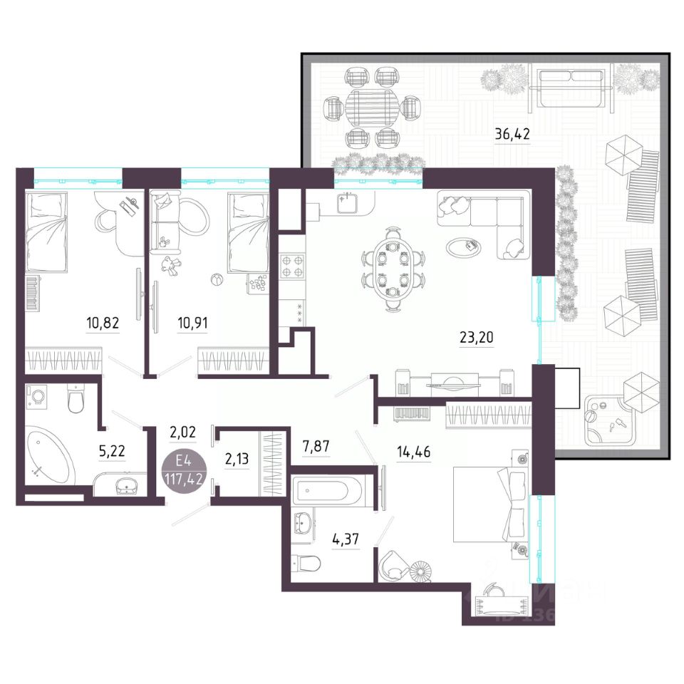 Общая площадь117,42 м2