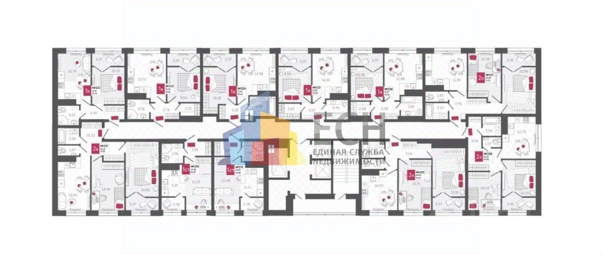 * Отделка: White box. * Особенности планировки: Два больших окна в комнате, обеспечивающие естественное освещение и визуальное расширение пространства.