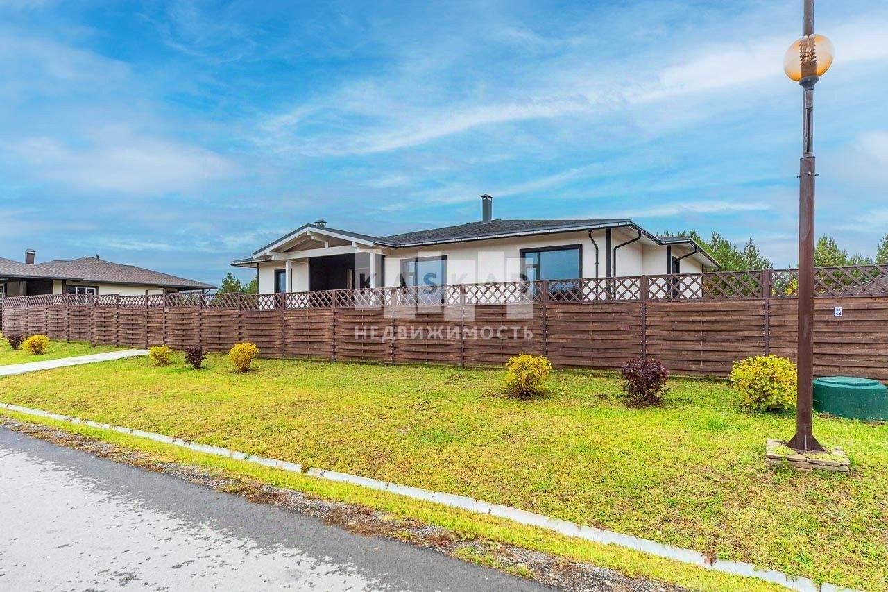 В поселке ''Капитанская бухта'', который входит в группу поселков ''КАПИТАН club'', замечательный одноэтажный дом, расположенный на прямом ровном участке 20 соток.