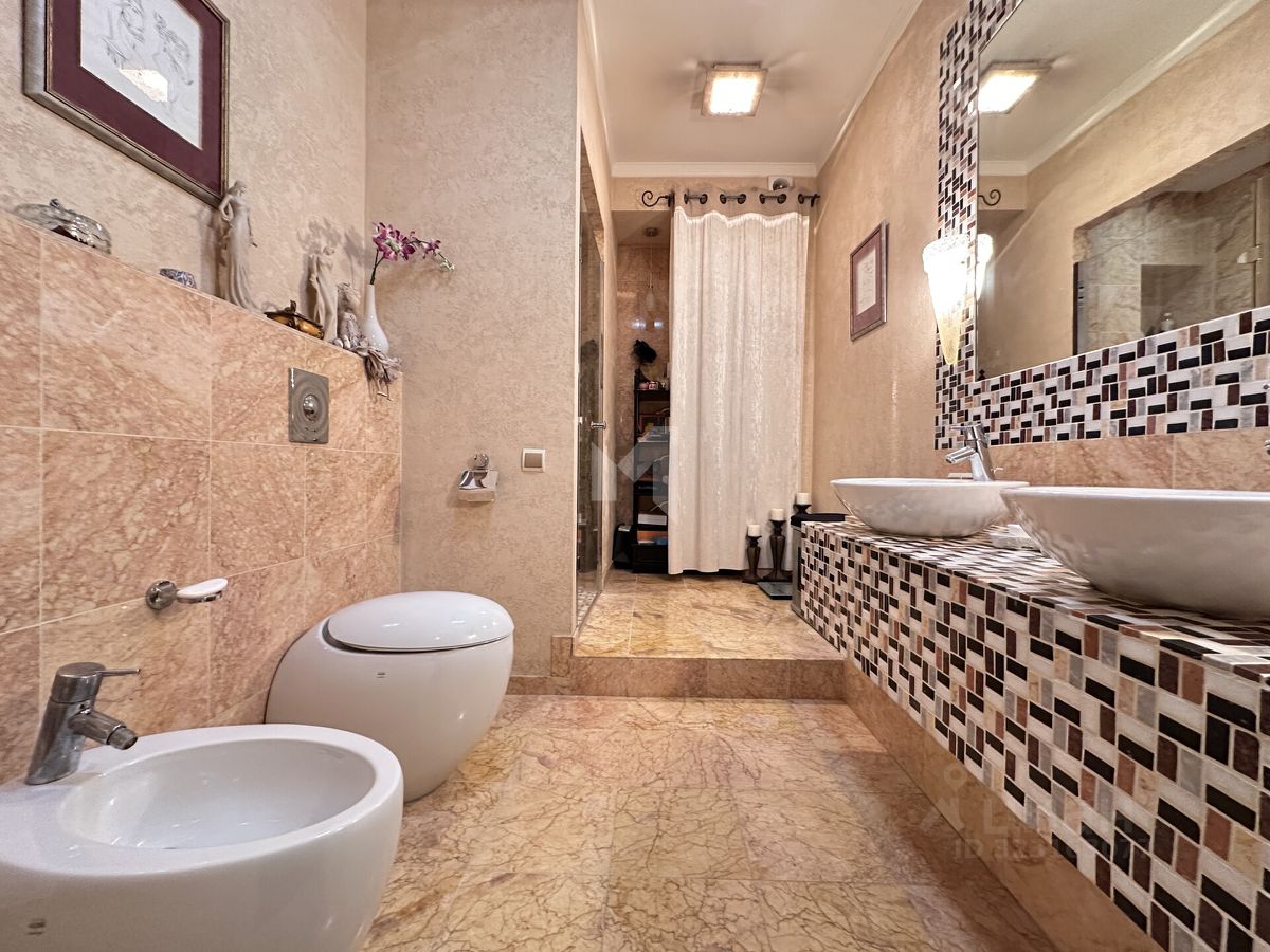 - Кухнястоловая с окном во внутренний двор, оборудована итальянской мебелью и бытовой техникой премиумкласса — идеальное пространство для семейных завтраков и ужинов. - Гостиная с прямым выходом на застеклённый балкон — зона отдыха и приема гостей. - Мастерспальня с собственной ванной комнатой и вместительной функциональной гардеробной. - Детская спальня — светлая и комфортная. - Отдельная гостевая комната, отлично подходящая для приема гостей или как рабочий кабинет. - Дополнительная ванная комната с качественной европейской сантехникой и отдельный гостьевой санузел. - Большая гардеробная для удобной организации хранения.