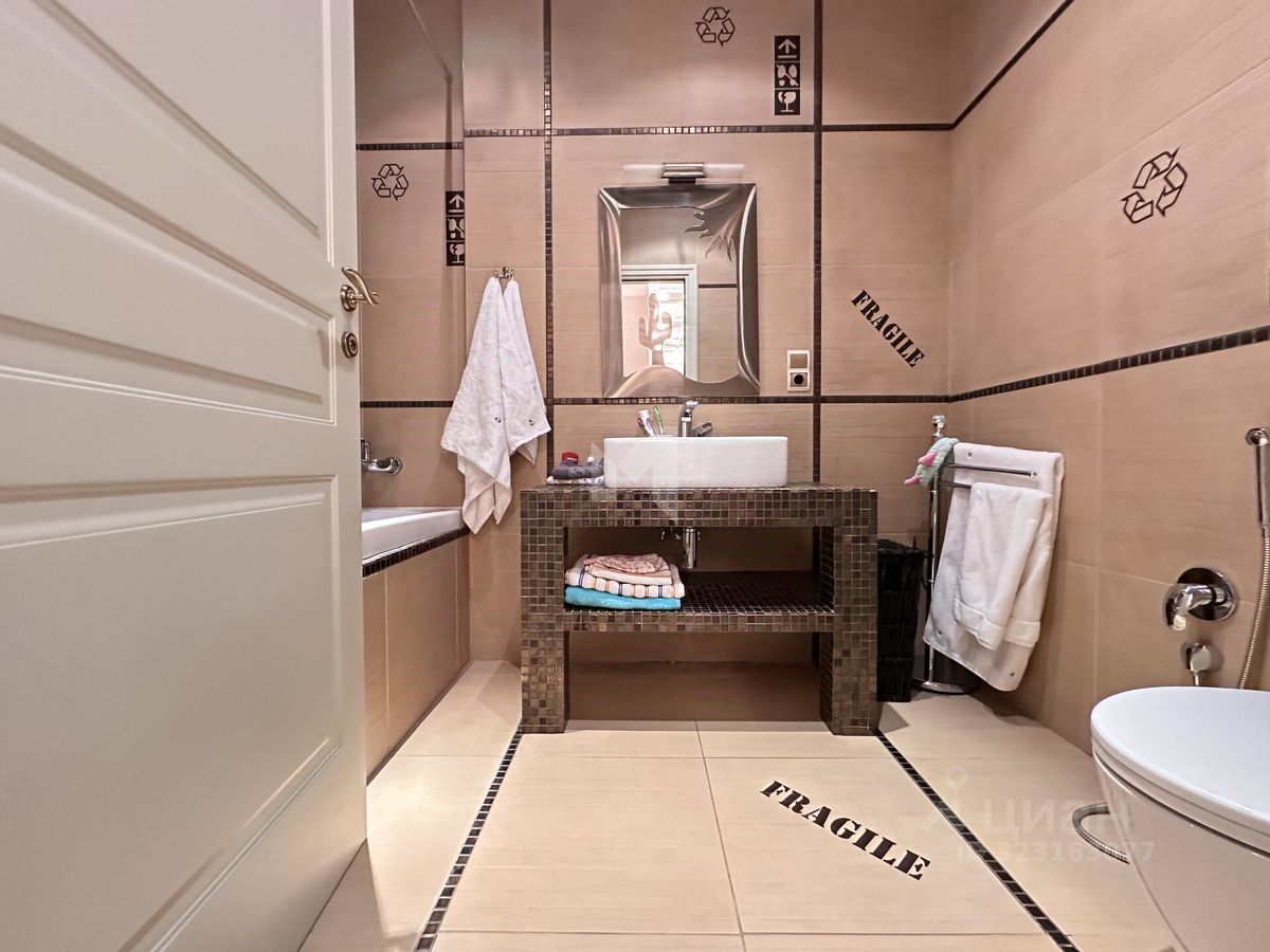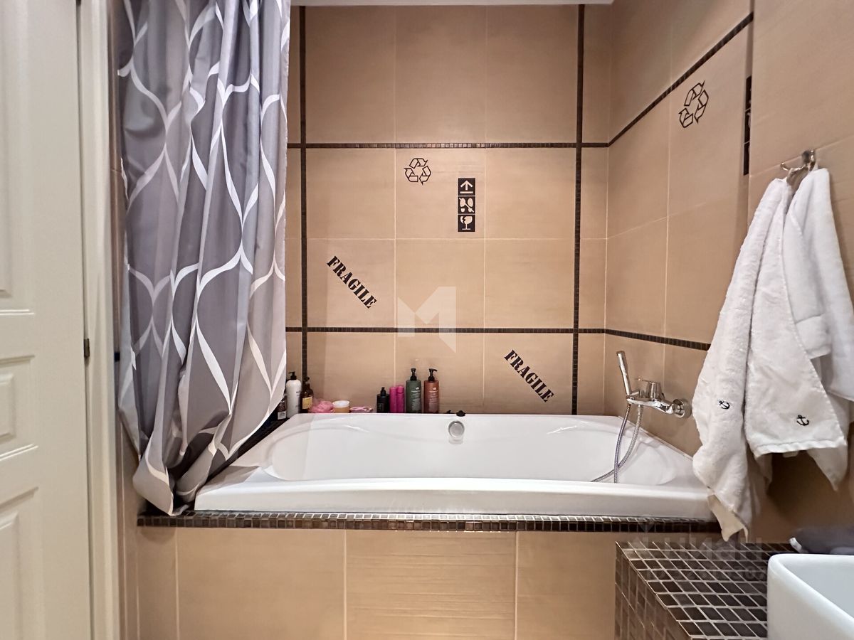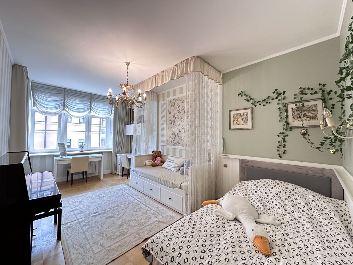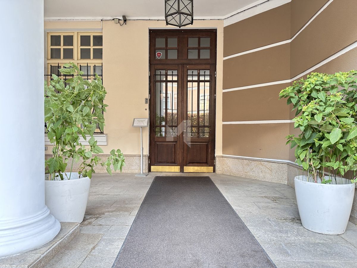 Отделка выполнена профессиональными архитекторами: премиальные напольные покрытия, мебель от ведущих итальянских фабрик, дизайнерские светильники и аксессуары, подчёркивающие статус и уют жилья. Окна выходят во внутренний тихий двор — в квартире сохраняется спокойная и домашняя атмосфера даже в дневное время.