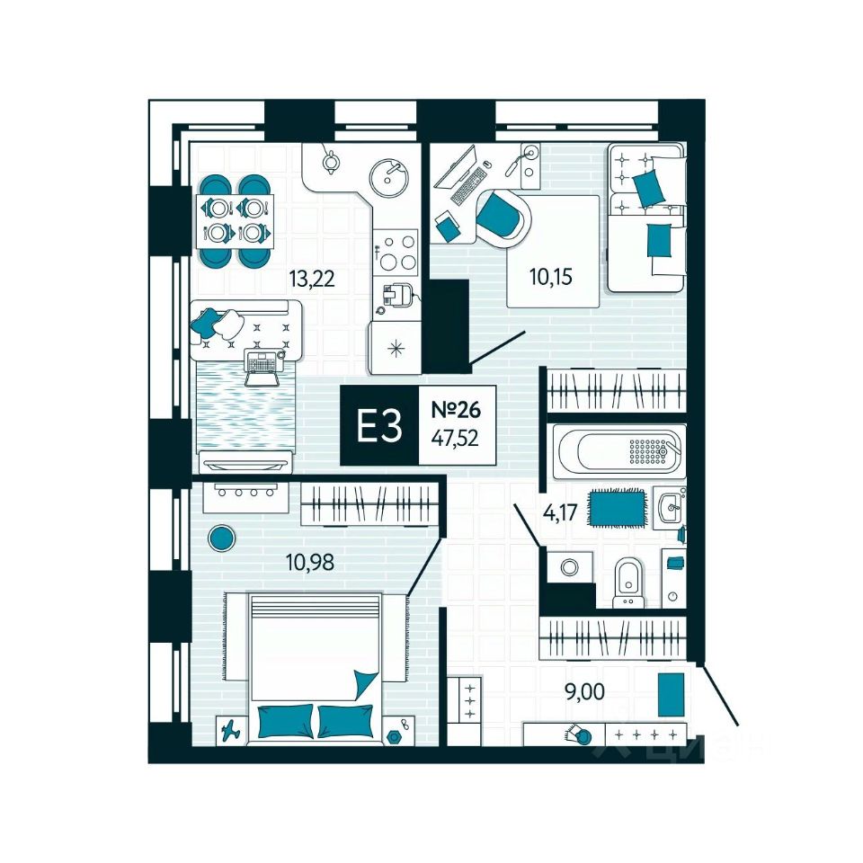 Квартира правильной геометрической формы позволяет функционально использовать пространство. С лоджией или без выбор за вами!