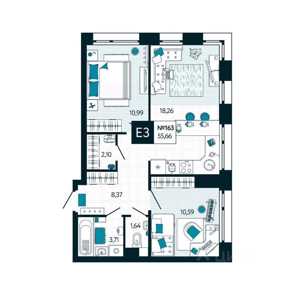 Квартира правильной геометрической формы позволяет функционально использовать пространство. С лоджией или без выбор за вами!