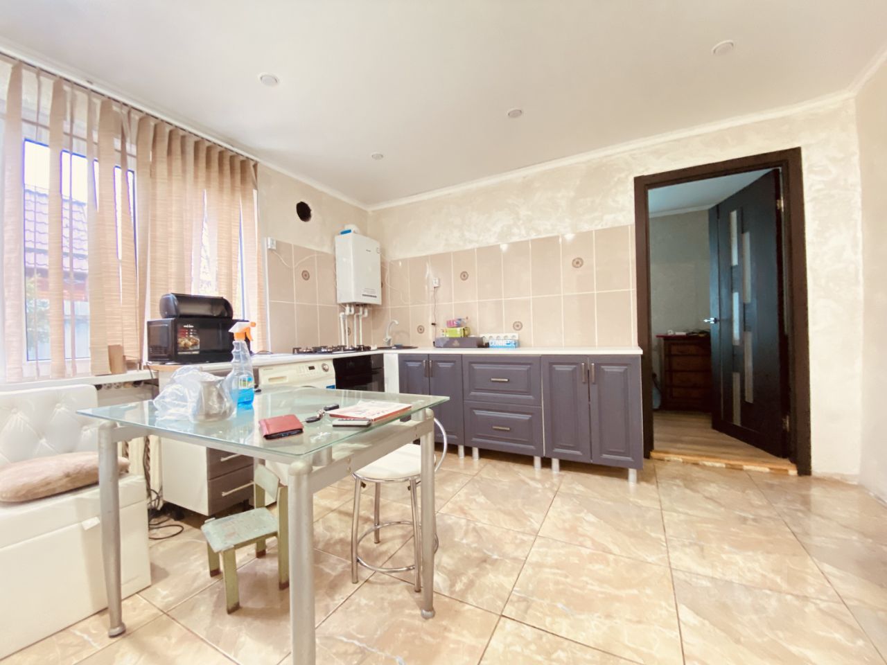 - Коммуникации: свет, электричество, вода в доме, вода - скважина, канализация - выгребная яма, дом отапливается электрическим котлом, газ проходит по границе участка, для подключения все документы получены, также установлен газовый котел в доме,