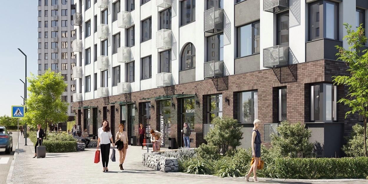 На первых этажах ЖК ''Авиатор'' предусмотрены помещения для магазинов, аптеки, кофейни, пунктов выдачи популярных маркетплейсов, химчистки и других полезных сервисов.