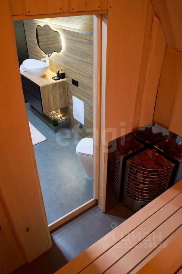 - Первый этаж: Гостиная, кухня, санузел, сауну с электропечью и отделкой из натуральной липы - Второй этаж: Спальная комната площадью 16 кв.м - Дополнительные помещения: - Терраса с настилом из террасной доски - Большой современный кухонный гарнитур с бытовой техникой - Встроенные шкафы для хранения вещей - Система вентиляции