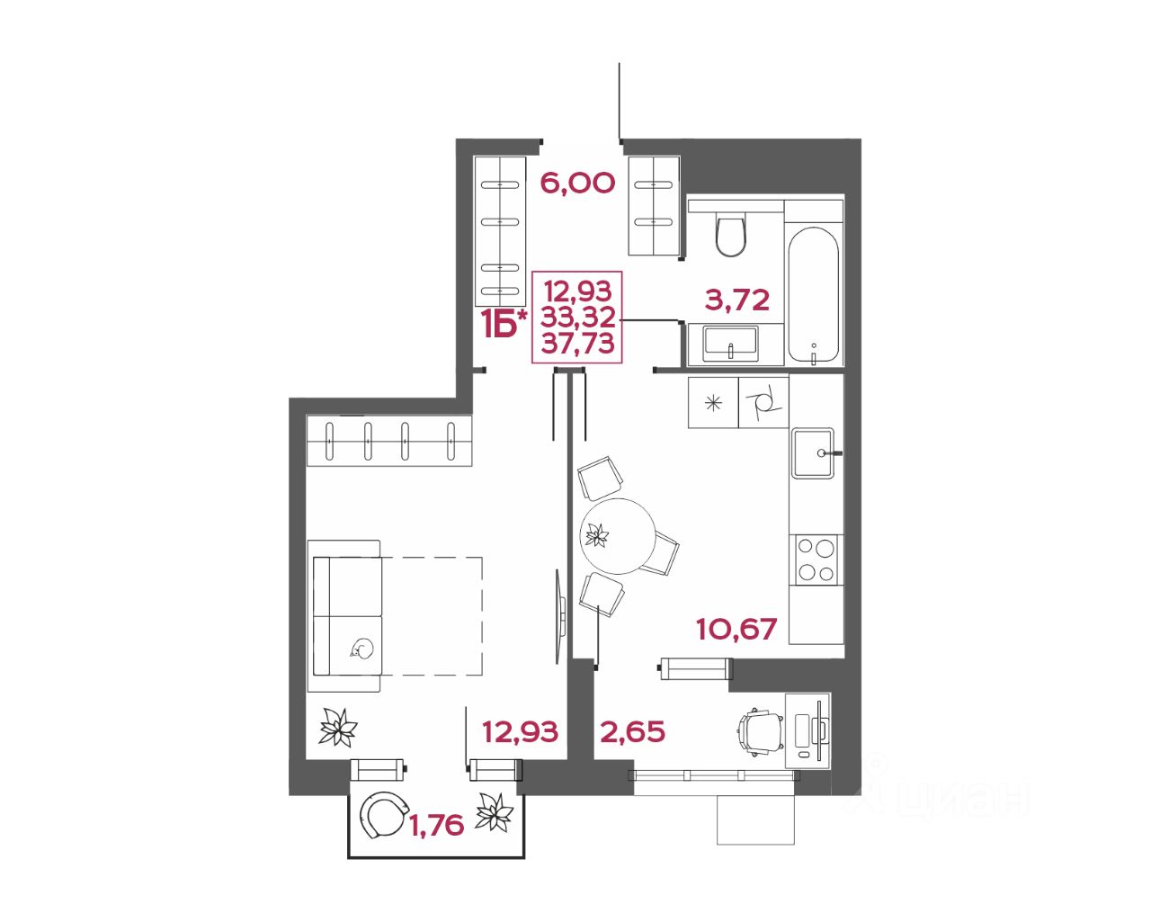 Общая площадь37,73 м2