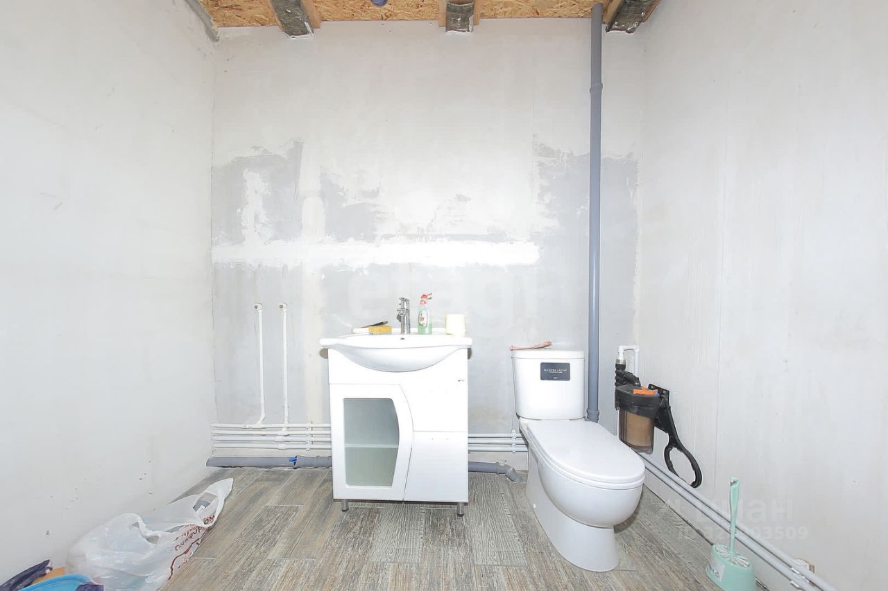 Конструктив стены: газобетон + утеплитель + штукатурка. Остекление: 2-х камерные стеклопакеты с профилем Rehau. Первый этаж: кухня-гостиная и санузел. Разведена электрика, стены отшпатлеваны, полы теплые электрические. Второй этаж под черновую отделку. Настелен пол. Качественная входная дверь.