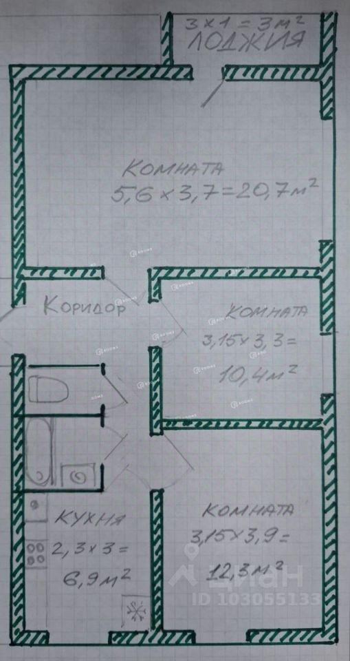 Квартира теплая, окна смотрят на 3 стороны - восток - север - запад. Все комнаты изолированные (20,7 / 10,4 / 12,3 кв.м.