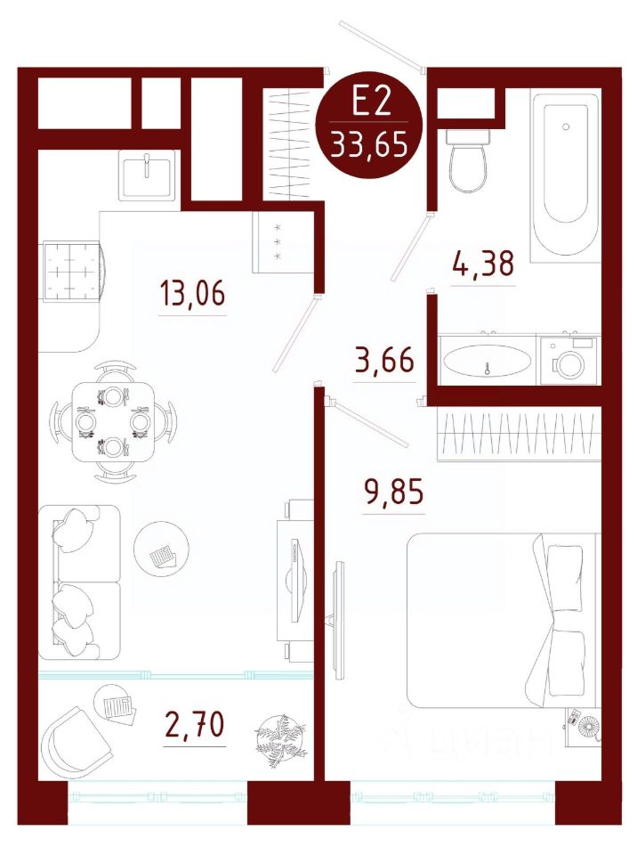 Общая площадь33,65 м2