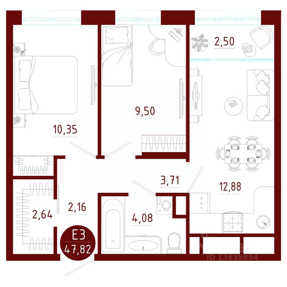 Общая площадь47,82 м2