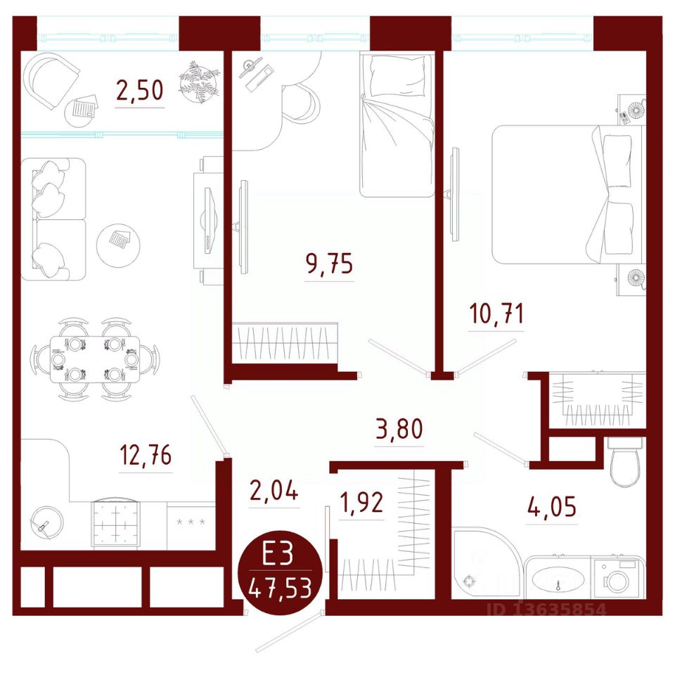 Общая площадь47,53 м2