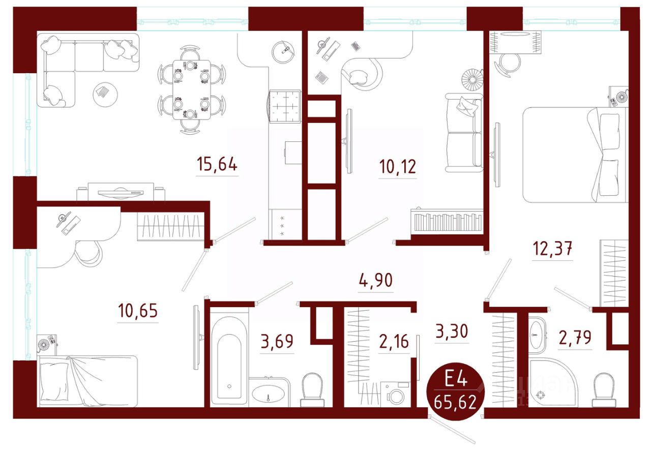Общая площадь65,62 м2