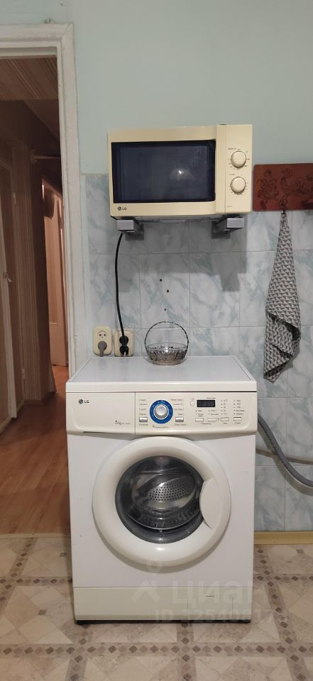 В квартире есть вся нужная бытовая техника: стиральная машина, микроволновая печь, газовая плита и холодильник.