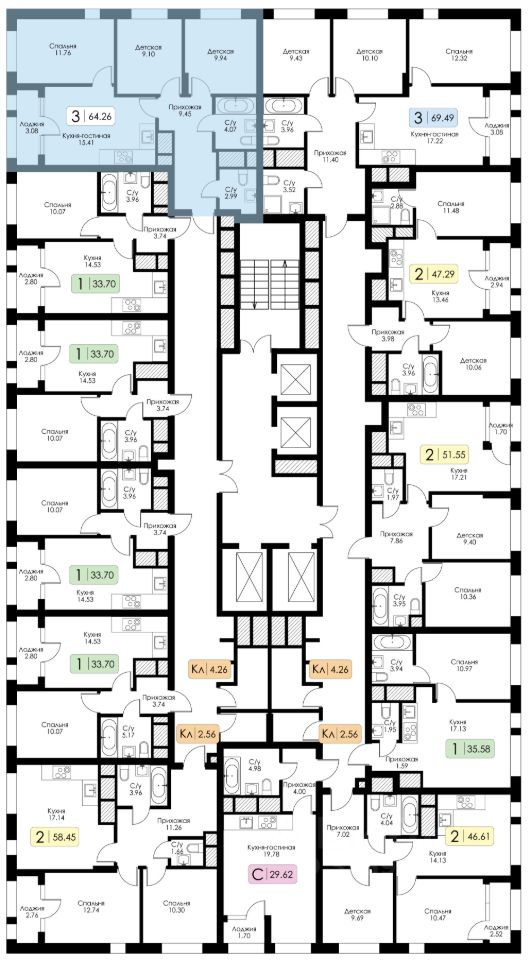 Площадь 64.26 на 20 этаже.