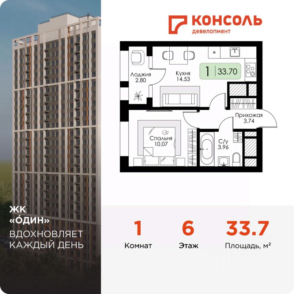 Продается однокомнатная квартира 56 без отделки в ЖК ''ОДИН'' от застройщика | Чистовая отделка | Семейная ипотека 3,5%