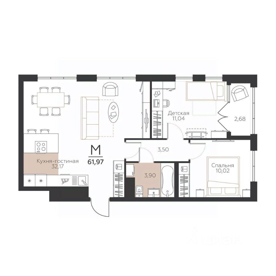 Общая площадь61,97 м2