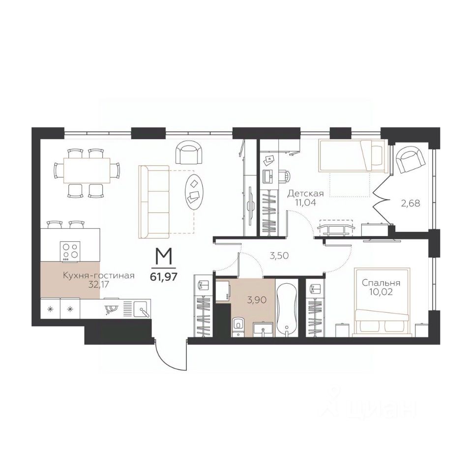 Общая площадь61,97 м2