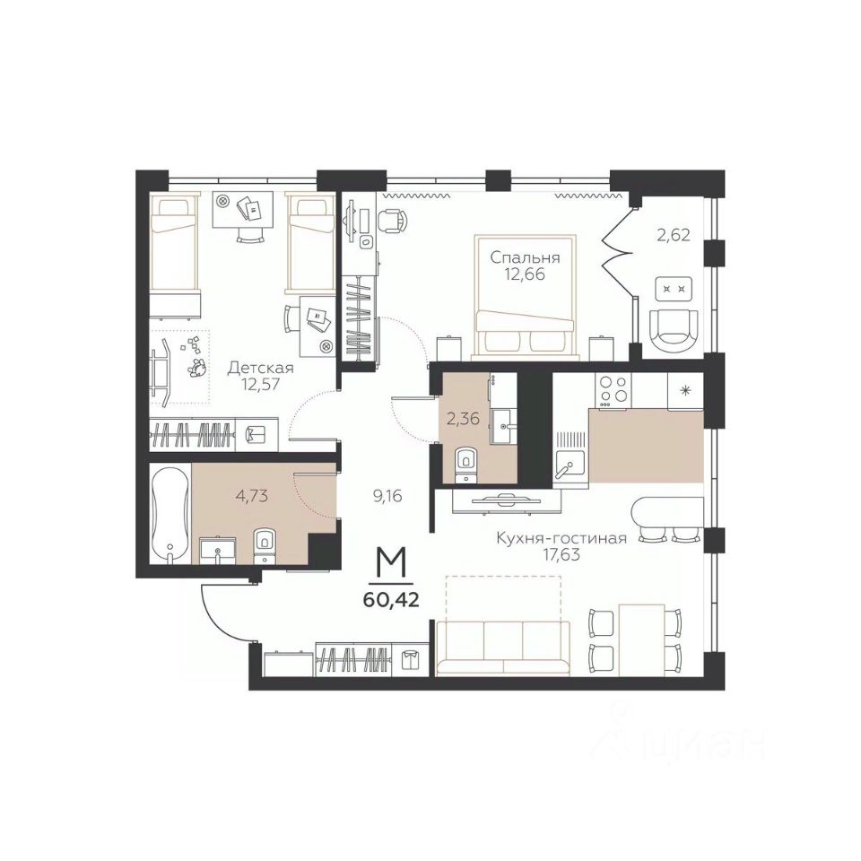 Общая площадь60,42 м2
