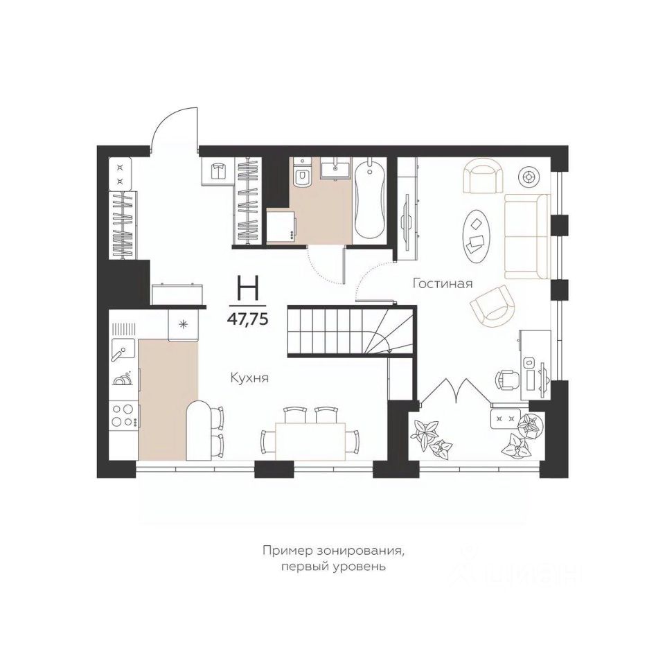 Общая площадь47,75 м2