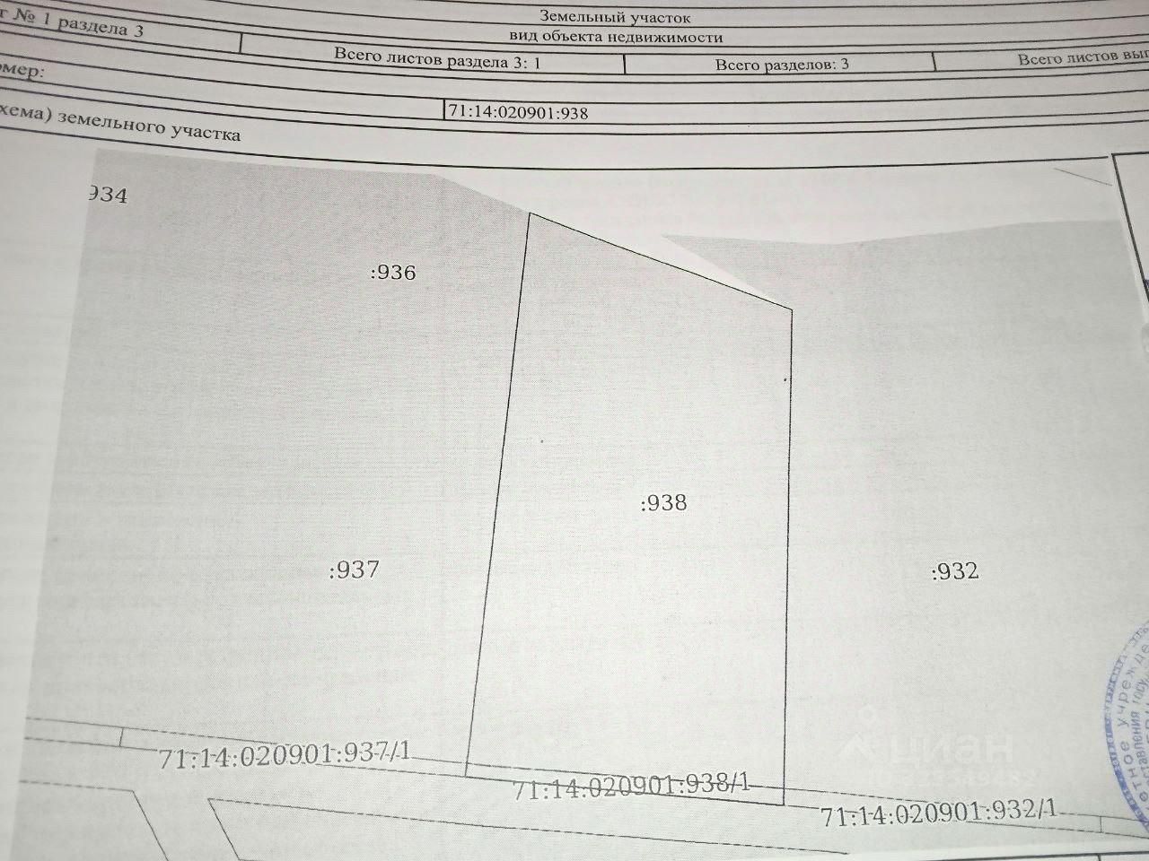 Кадастровый номер: 71:14:020901:932 Номер кадастрового квартала:71:14:020901 Дата присвоения кадастрового номера: 27.04.2017г Площадь участка 13 соток