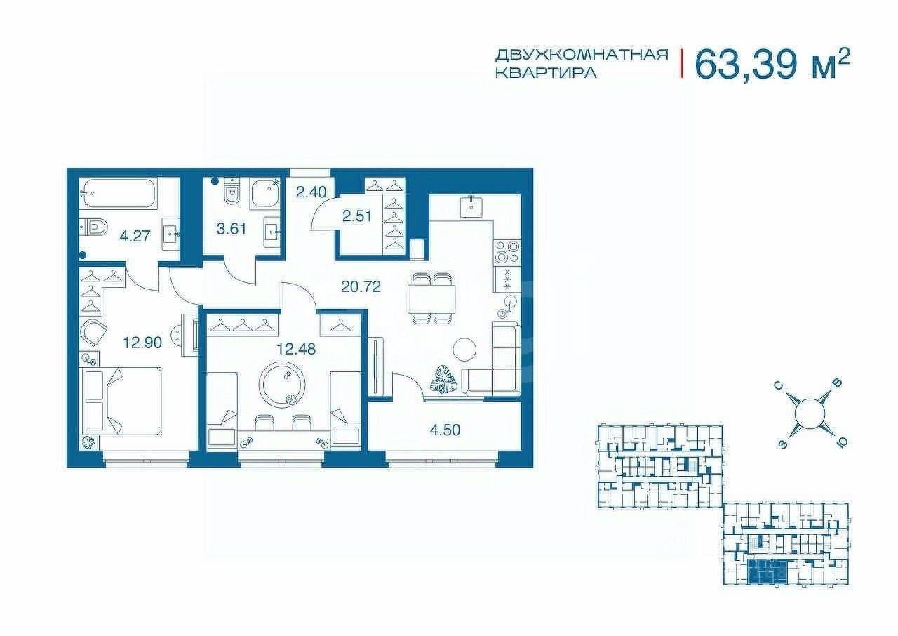 Почему эта квартира вызывает вспышку ''давай берём''? Момент 1. ''Вау'' уже на входе Кухня-гостиная — место, где собираются самые приятные события: семья, друзья и вы, пытающийся закрыть холодильник, не глядя. Панорамные окна + высокие потолки — ощущение, что жизнь наконец решила вас уважать. Момент 2. Пространство личного спокойствия Две спальни. Одна — мастер. Тут можно выдохнуть, подумать, полежать И почувствовать себя человеком, у которого наконец есть свой угол, и никто туда без стука. Момент 3. Утро без дипломатических переговоров Два санузла — это когда в семье мир, порядок и никто не стучит в дверь с фразой: ''Ну ты долго ещё?'' Момент 4. Лоджия, где утренний кофе звучит как тост Тут кофе становится вкуснее. Причём необъяснимо. Но, как говорил классик, главное — работает.