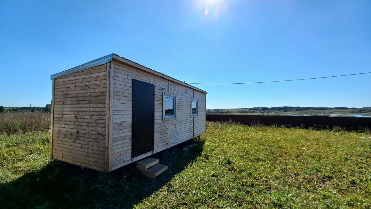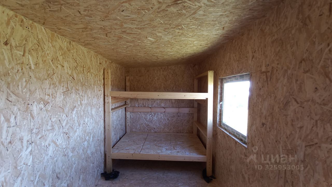 Бытовка 7 м х 2,5 м планировалась для зимнего проживания. Утепление 100 мм, высота потолков увеличена: 2,4 - 2,2 м. Внутрь заведено электричество, сделан пока только свет. Внутри тамбур, кладовка и общая комната с двухярусной кроватью.