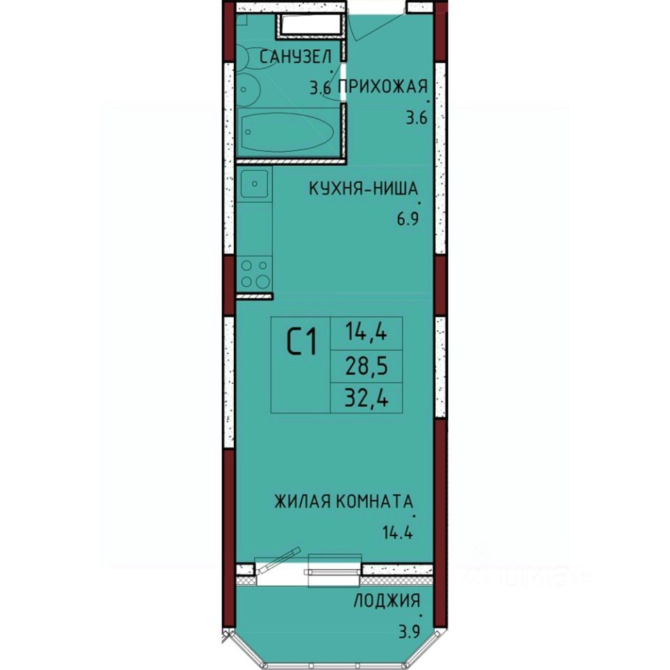 Общая площадь32,4 м2