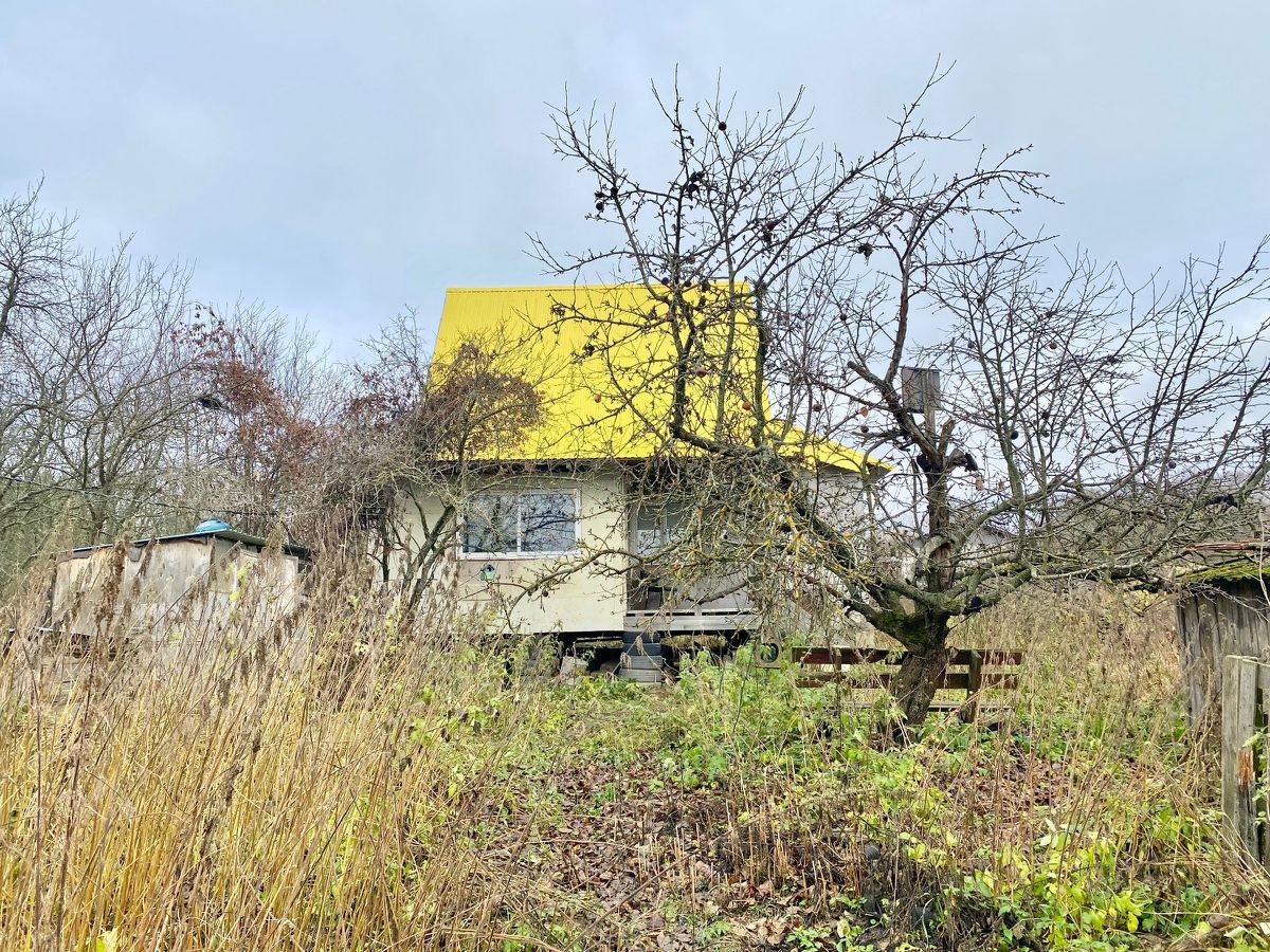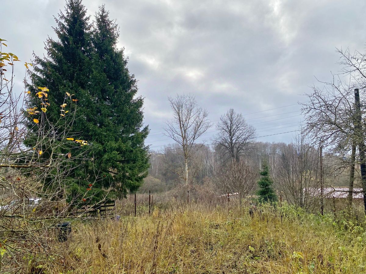 На участке посажены плодовые деревья (слива, яблони), кустарники, взрослые ели. Также имеется старый дом, который используется как сарай.