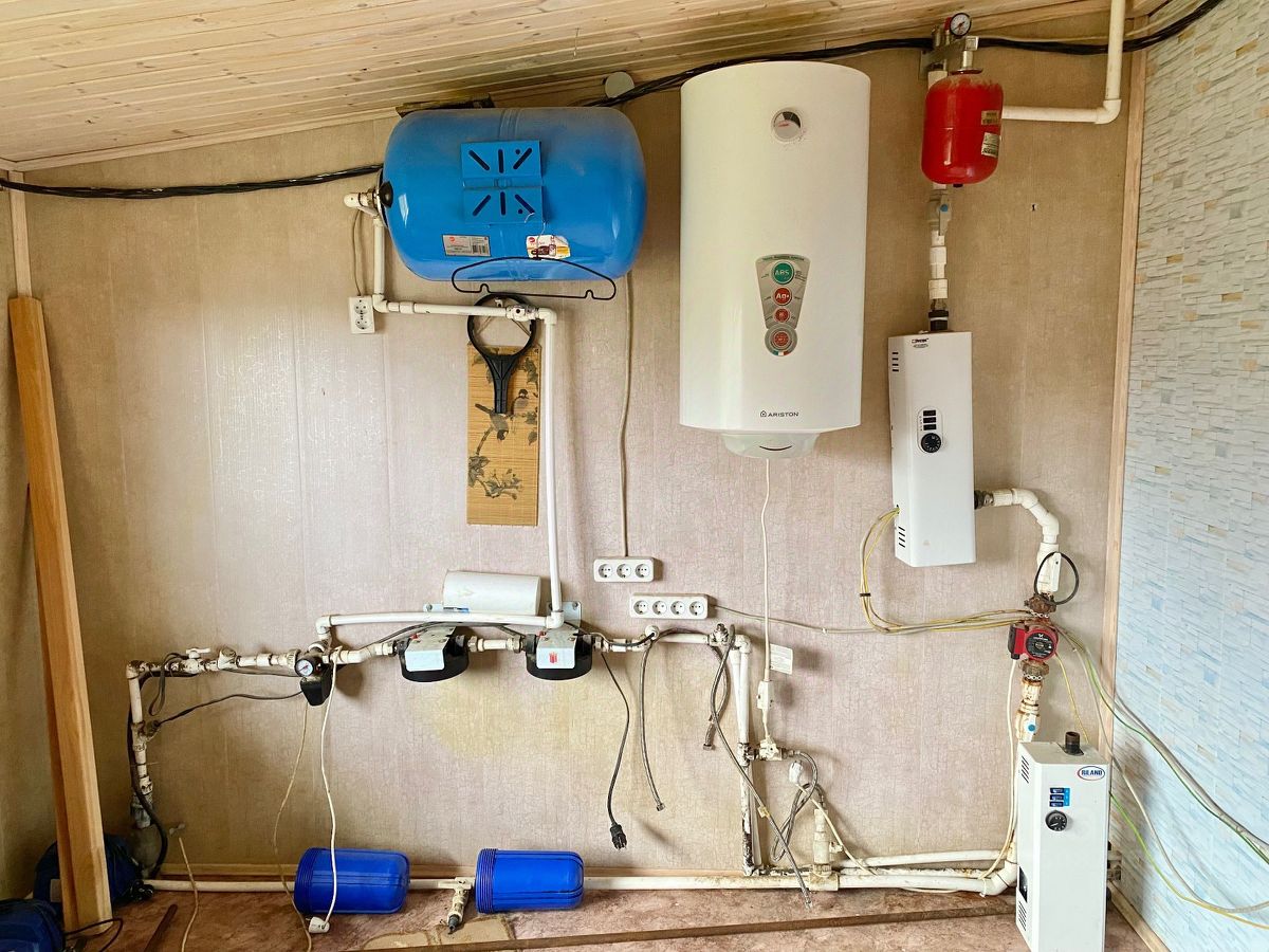 1. Подключено электричество 15 кВт, 3 фазы (разведено по дому), 2. своя скважина (заведена в дом, функционирует), 3. септик (Топаз на 8 человек, заведен в дом), 4. газ на участке (есть тех условия на подключение), 5. отопление - водяные батареи, в системе залит антифриз (пока работают от электричества).