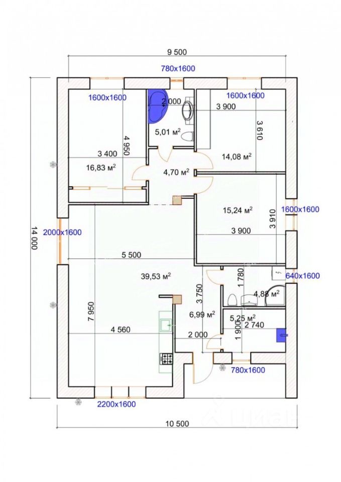 Общая площадь126 м2