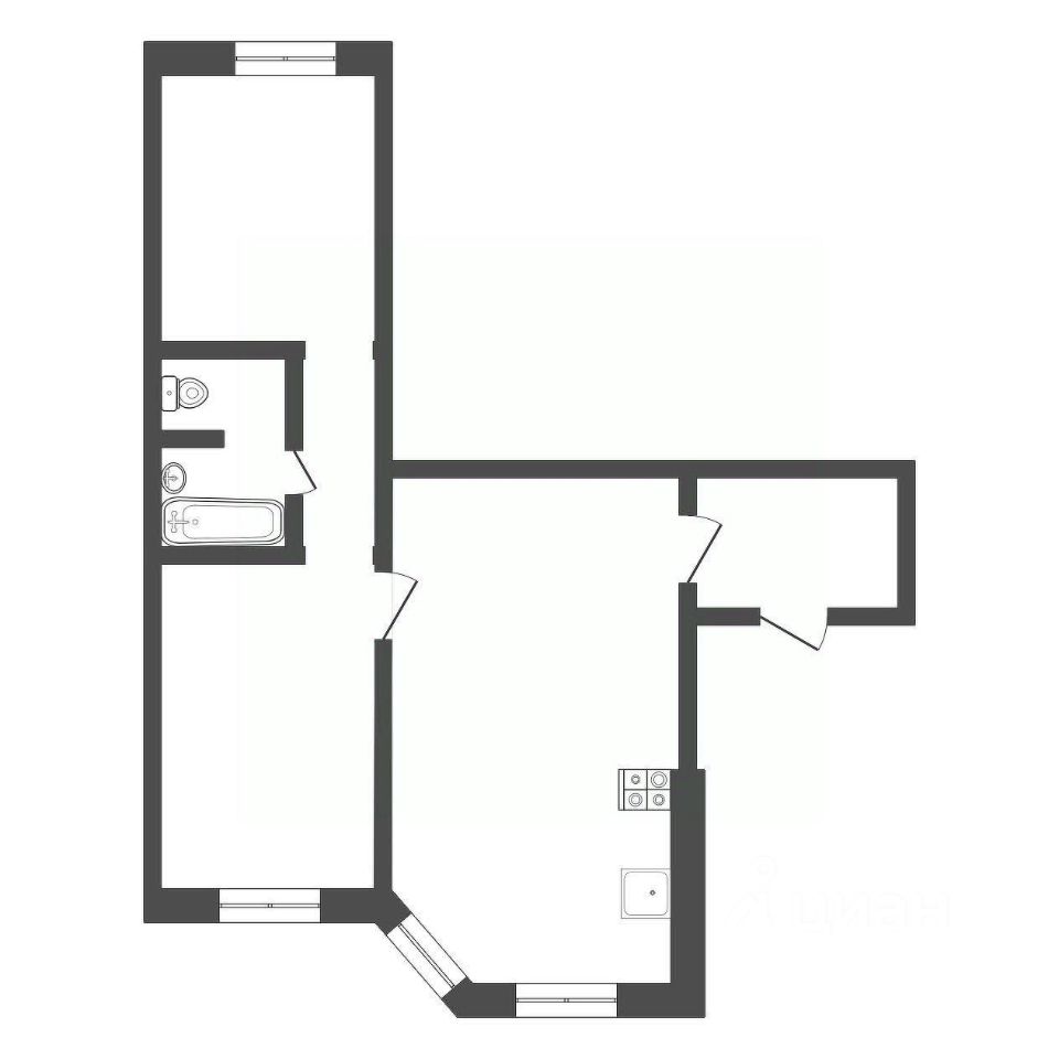 По квартире уже произведена разводка электрики с розетками и выключателями, подключены радиаторы и подведены трубы водоснабжения и канализации к местам установки сантехники.