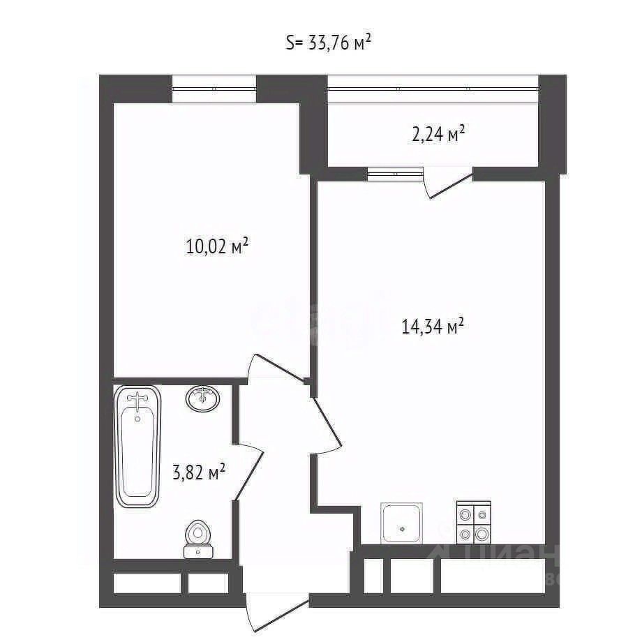 Просторная кухня-гостиная с выходом на остекленную лоджию, совмещенный санузел, в прихожей предусмотрено место под шкаф-купе.