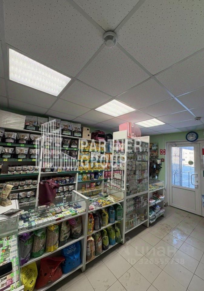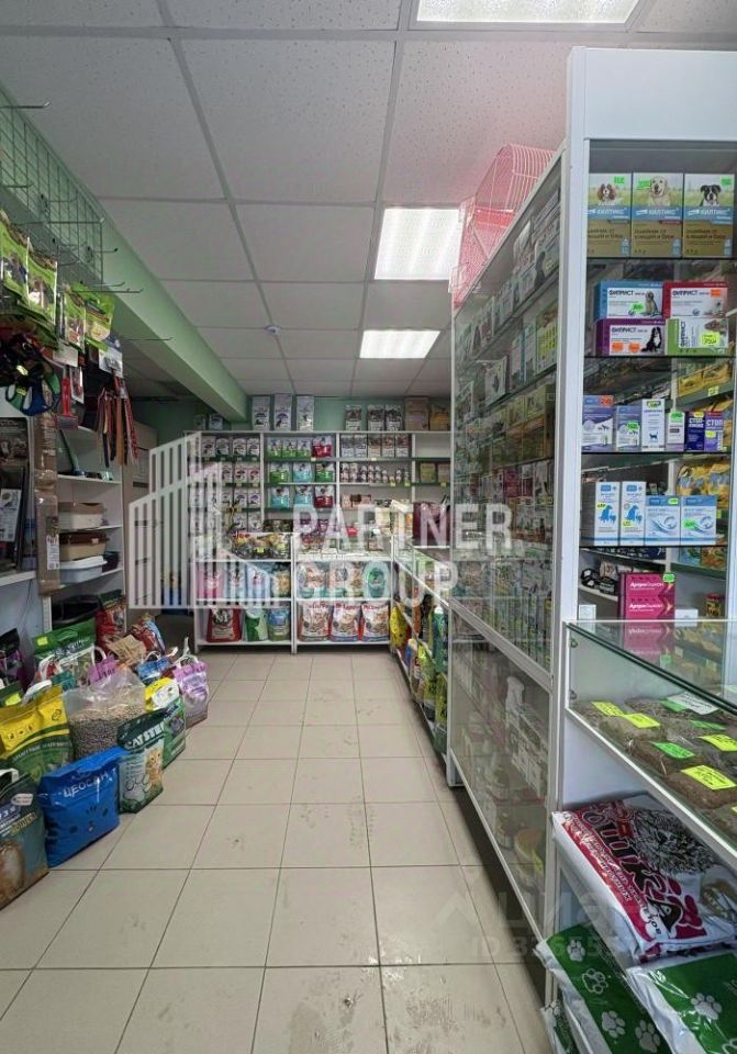 Свой санузел. Возможно оставить в аренду торговые прилавки, стеллажи, холодильник (в настоящее время в помещении расположен магазин для животных).