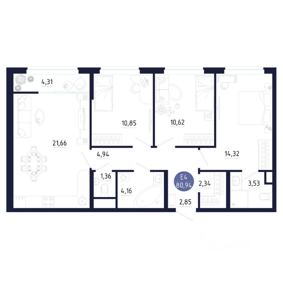 Общая площадь80,94 м2