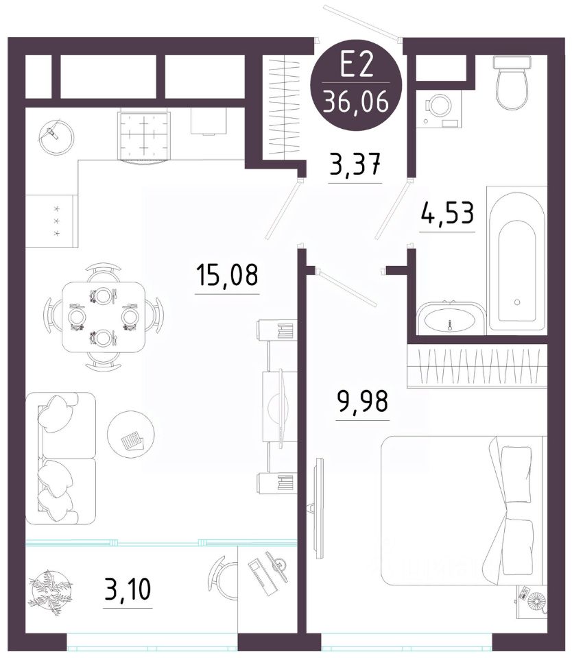 Общая площадь36,06 м2