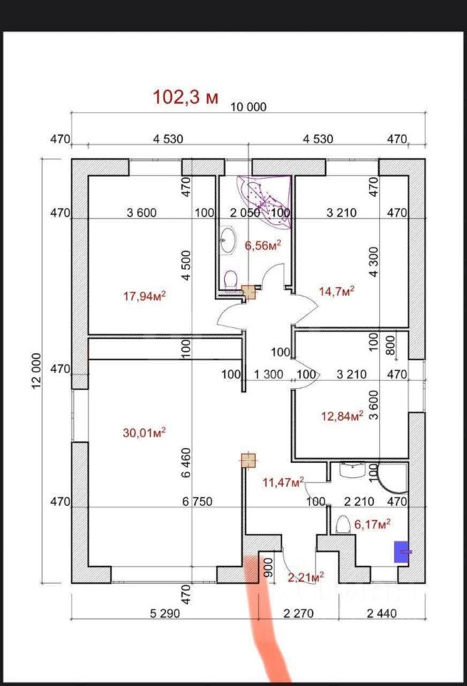 Общая площадь102 м2